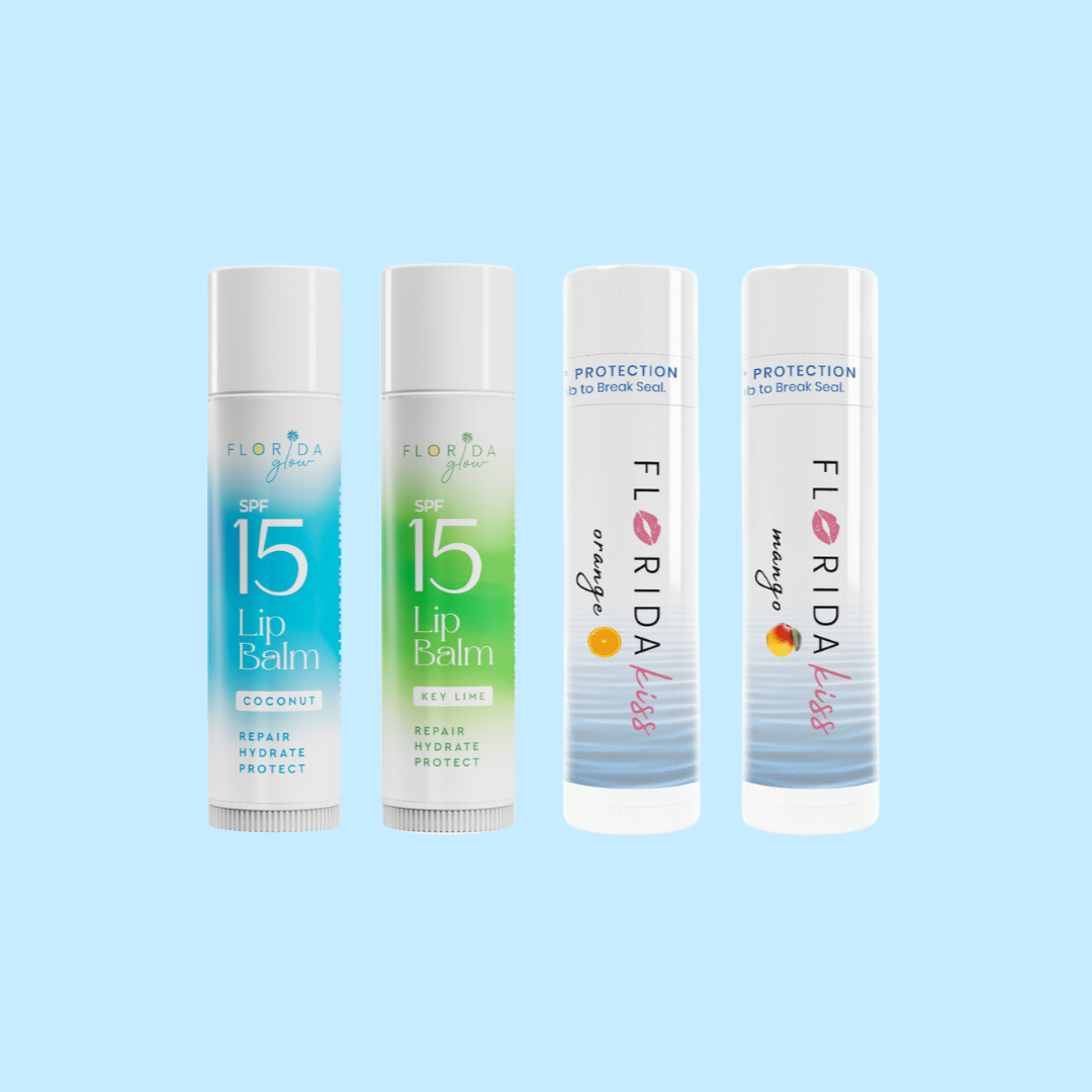 Protect and moisturize your lips with our SPF 15 Lip Balm Sampler Pack. This limited edition Sampler Pack includes all four tropical flavors: Key Lime, Mango, Coconut and Orange!